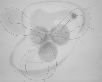 Les dessins sur calques sont une suite du travail de Roland Schär sur les formes hybrides. Ces formes sont élaborées à partir des formes d'objets quotidiens, en considérant que ce qui sépare les objets, ce n'est pas un vide, mais un potentiel de nouvelles formes qu'il s'agit à révéler. Chacun des dessins qui sont tracés sur les deux faces des deux calques composant chaque uvre représente une étape intermédiaire de la migration d'une forme vers une autre. C'est maintenant dans l'épaisseur même des calques qu'apparaît la diachronie de ce processus de transformation. La superposition des strates de cette évolution interroge alors l'identité même de chaque forme en laissant deviner la pluralité qu'elle porte en elle. Jean Viala