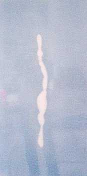 dans la série traces, les plaques de plexiglas montrent des formes prélevées à partir de personnages représentés dans des peintures anciennes. ces formes englobent divers éléments plastiques de la peinture, dépassent le personnage et le résument en même temps, le ramènent à une forme essentielle, dans un état incertain entre apparition et disparition.